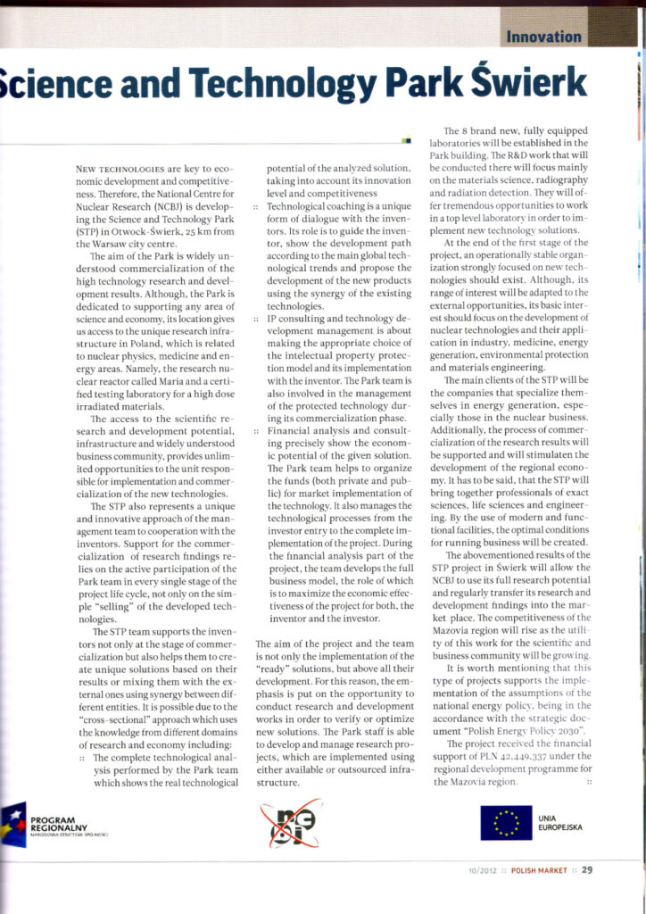 Agencją Energii Atomowej w Wiedniu w zakresie wprowadzania nowych projektów na rynek międzynarodowy.
